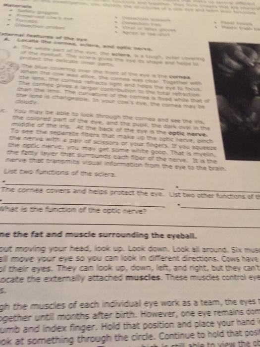This tough, outer covering of the eyeball has fat and muscle attached to it 2. Cow eye dissection worksheet answers the implementation of the concept is connected to the numbers since it is the key understanding whereupon both these numbers are based. Directions and questions for dissecting a cow eye.